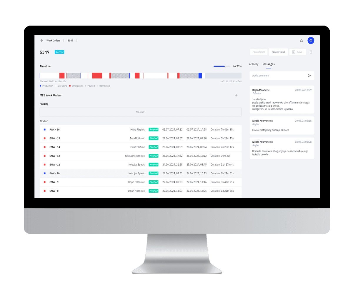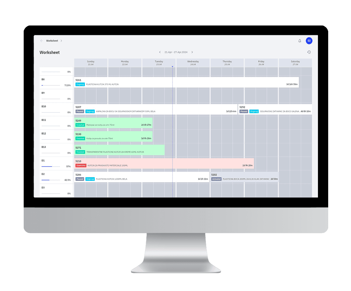 Radni nalozi se automatski prilagođavaju uslovima u proizvodnji, uzimajući u obzir sve planirane i neplanirane zastoje.