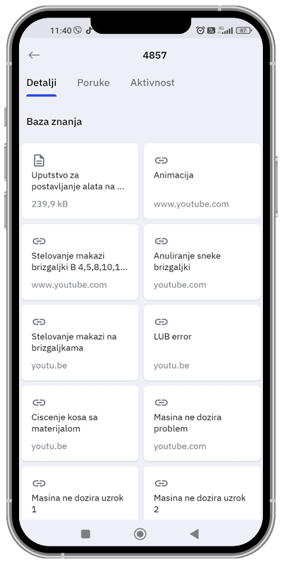 Baza znanja, dostupna zaposlenima u svakom trenutku, omogućava brzo i samostalno rešavanje svih zastoja u proizvodnji, bez čekanja.